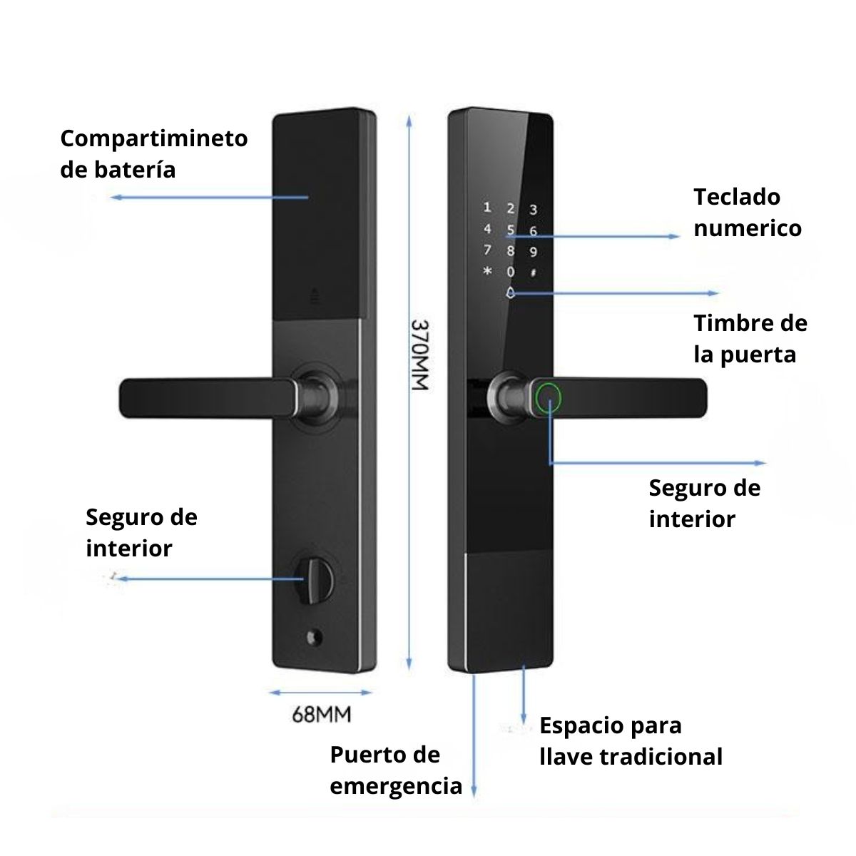 Funciona con 4 baterías AA de larga duración, por lo que no dependerás de cables ni conexiones eléctricas. Además, se adapta fácilmente a puertas metálicas, de madera o de seguridad, brindando máxima versatilidad.